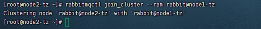rabbitmqctl join_cluster --ram rabbit@node1-tz