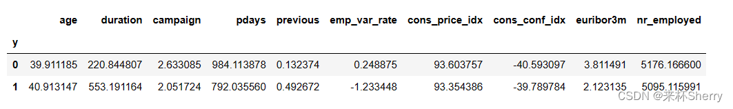 data.groupby('marital').mean()data.groupby('education').mean()购买定期存款的客户的平均年龄高于未购买定期存款的客户的平均年龄。 购买定期存款的客户的 pdays(自上次联系客户以来的日子)较低。 pdays越低,最后一次通话的记忆越好,因此销售的机会就越大。 购买定期存款的客户的销售通话次数较低。 我们可以计算其他特征值(如教育和婚姻状况)的分布,以更详细地了解我们的数据。