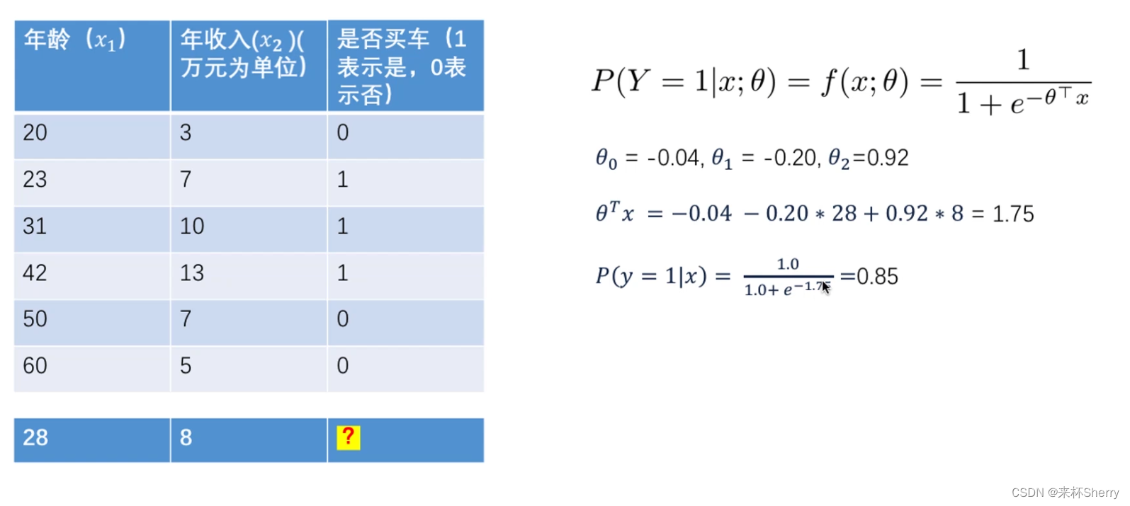 Logic Regression (LR),逻辑回归的因变量是二分类的,而不是连续的。它的输出是一个概率值,表示输入数据属于某个类别的概率。如果该值为0.8,则表示输入数据有80%的可能性属于某个类别。