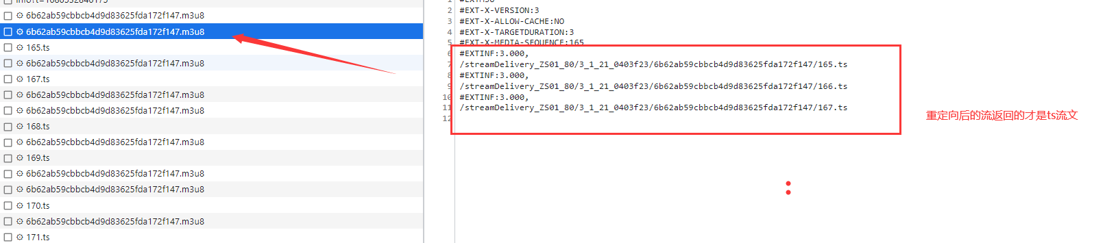 从而实现兼容H.265 HLS流需要重定向的功能。