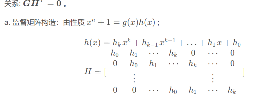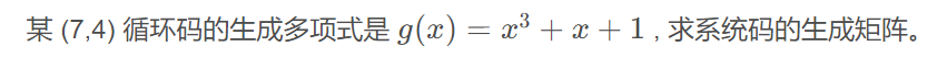 为了保证构成的生成矩阵 G 的各行线性不相关, 通常用生成多项式 g(x) 来构造生成矩阵; 若码多项式为降幂排列,