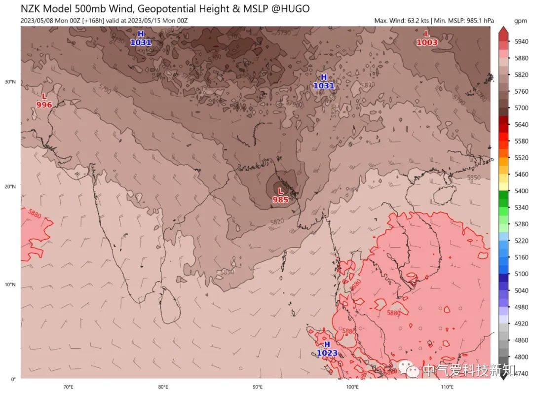摩卡生成前,坤舆模式对摩卡登陆地的预报数据可视化结果,中气爱制作
