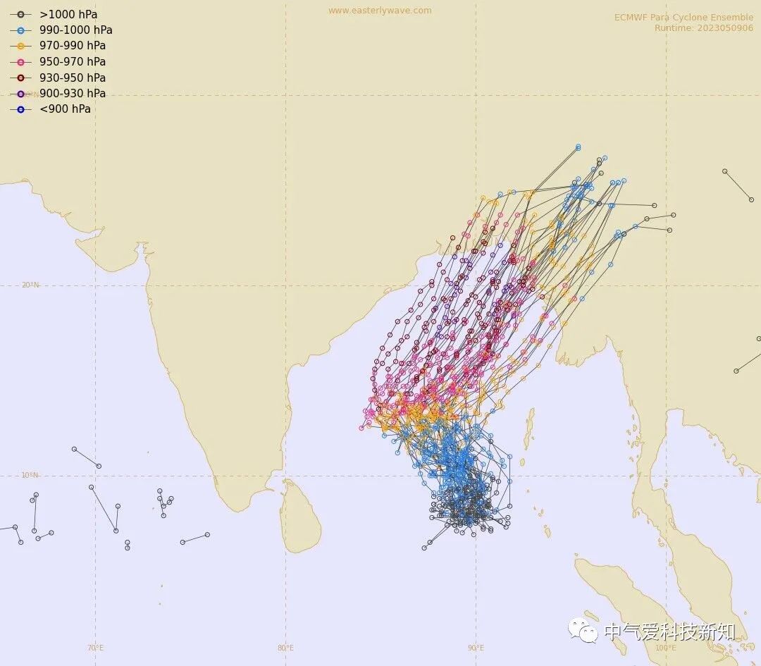 摩卡生成前,ECMWF模式对摩卡的集合预报数据可视化结果,中气爱制作