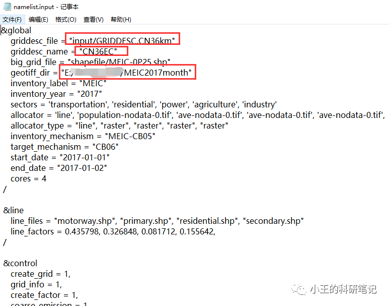 1.首先,修改namelist.input,设置好网格信息文件GRIDDESC以及网格名等变量,以及时间分配系数文件和物种分配系数文件等,具体可参考步骤一。