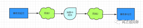 事务发起方(消息生产方)将消息发给消息中间件,事务参与方从消息中间件接收消息,事务发起方和消息中间件之间,事务参与方(消息消费方)和消息中间件之间都是通过网络通信的,由于网络通信的不确定性会导致分布式事务有问题。