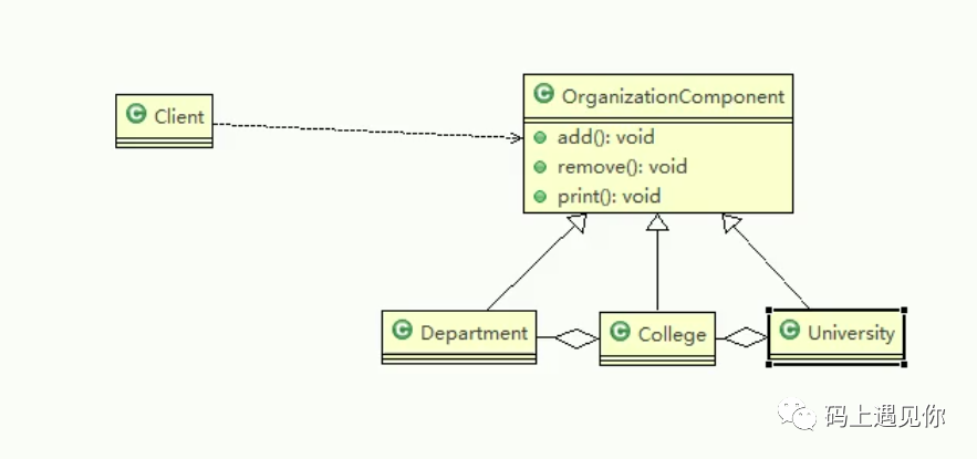 这里Department 聚合 College 聚合 University,是将OrganizationComponent作为属性放在Composite(也就是College、University)