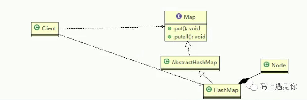 AbstractMap也相当于Component,不同之处就在于,AbstractMap是一个抽象类,Map是一个接口,它多做了一层,首先声明一个接口(Map),抽象类(AbstractMap)去实现这个接口;这里的Component(Abstract)做了两层,我们上述的Component只做了一层。