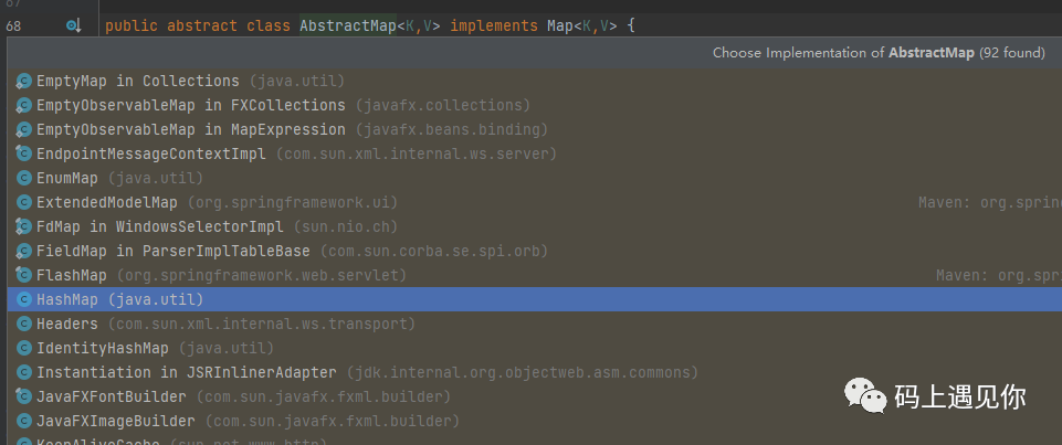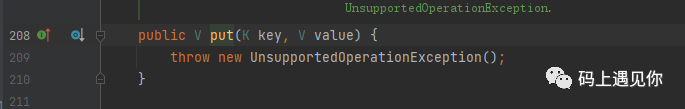 如图所示它的子类有一个AbstractMap在AbstractMap中默认实现了put方法(抛出了一个不支持的异常),说明了这个方法还需要下面的子类进行实现。