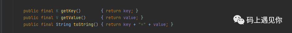 Node,这个Node就类似我们之前讲得叶子节点,因为它的下面并没有put putAll方法,只有getKey()、getValue()...