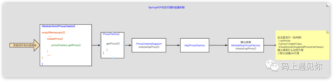 在步入正题之前先给大家看一下 Spring 创建代理的大致流程图