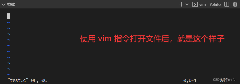 如果已经创建好了文件,假设为 test.c ,那么我们可以直接通过 vim test.c 打开这个文件