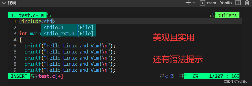 插入模式即编辑模式,在插入模式中,键盘的功能就是输入内容,各种指令不在生效 ,我们编辑内容是在插入模式中进行的,vim 模式支持语法高亮,前提是文件的后缀要与代码内容匹配