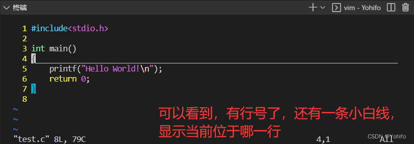 这条指令比较重要,因为它可以帮我们把行号设置出来,这样可以让我们的编辑器更好看