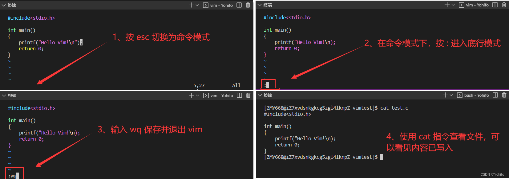 注意:如果发现自己退不出 vim ,可以通过 !wq 强制保存并退出,再退不出说明权限不足