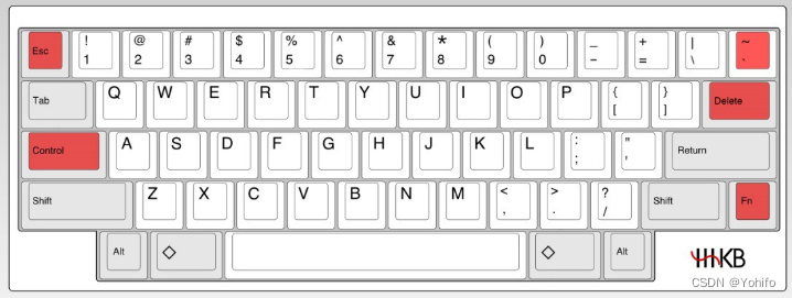 h 向左移动,巧计 h 位于这四个键的最左边j 向下移动,巧计 j 为 jump ,站在悬崖边往下跳就是向下移动k 向上移动,巧计 k 为 king ,国王,至高无上,就是向上移动l 向右移动,巧计 l 在最右边键位比较奇怪,大佬的世界我们不懂,顺便提一下,之所以会有这四个键,是因为键盘一开始是没有方向键的(当然现在有些键盘也没有,比如 HHKB 的键盘),它长这个样子