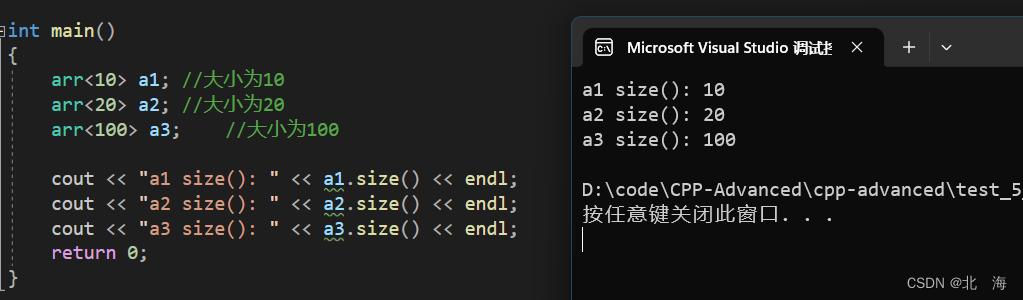 利用 非类型模板参数 定义一个大小可以自由调整的 整型数组 类