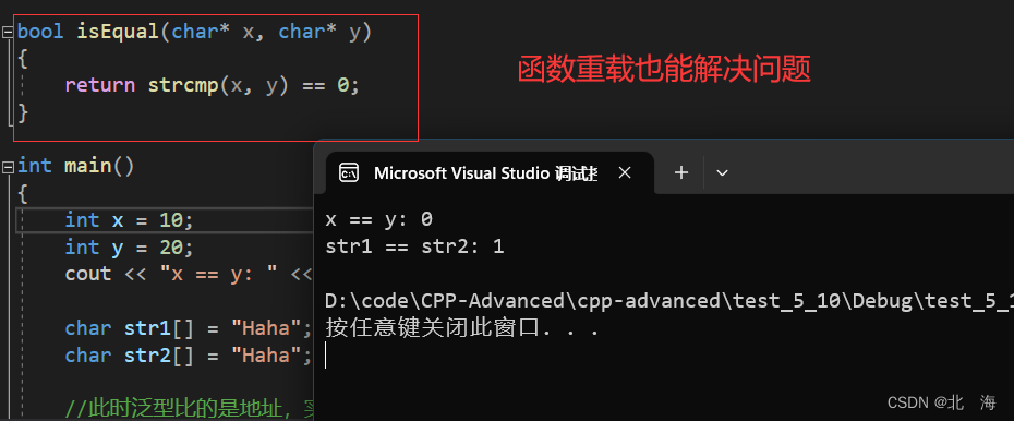 解决方案:利用模板的特化,为字符串的比较构建一个特殊模板