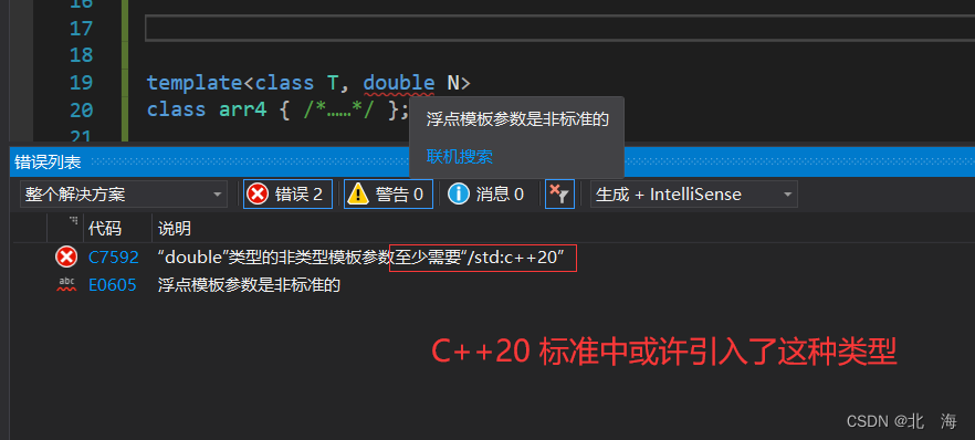 class arr3 { /*……*/ };而一旦使用其他家族类型作为 非类型模板参数,就会引发报错