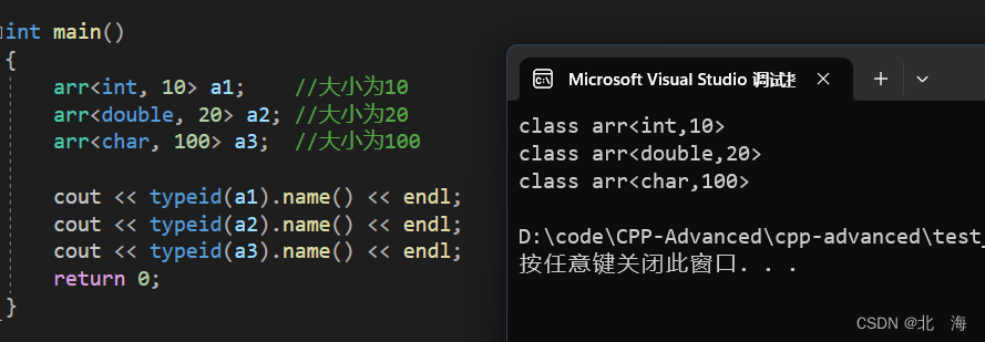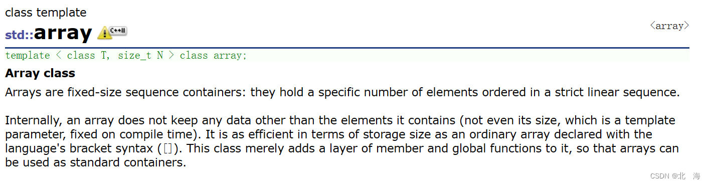 在 C++11 标准中,引入了一个新容器 array,它就使用了 非类型模板参数,为一个真正意义上的 泛型数组,这个数组是用来对标传统数组的