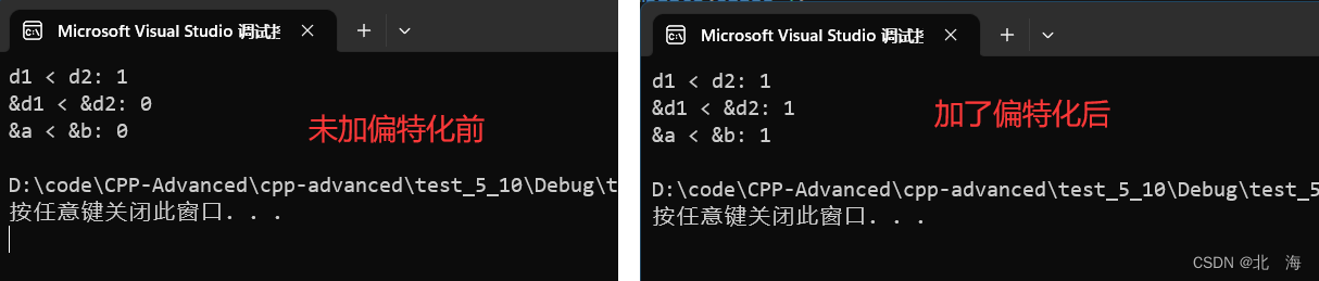 比如在下面这个比较函数中,假若不进行特化,则会出现错误的结果
