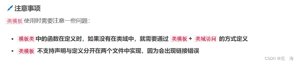 }这也就解释了为什么涉及 模板 的类,其中的函数声明和定义会写在同一个文件中 (.h),著名的 STL 库中的代码的声明和定义都是在一个 .h 文件中