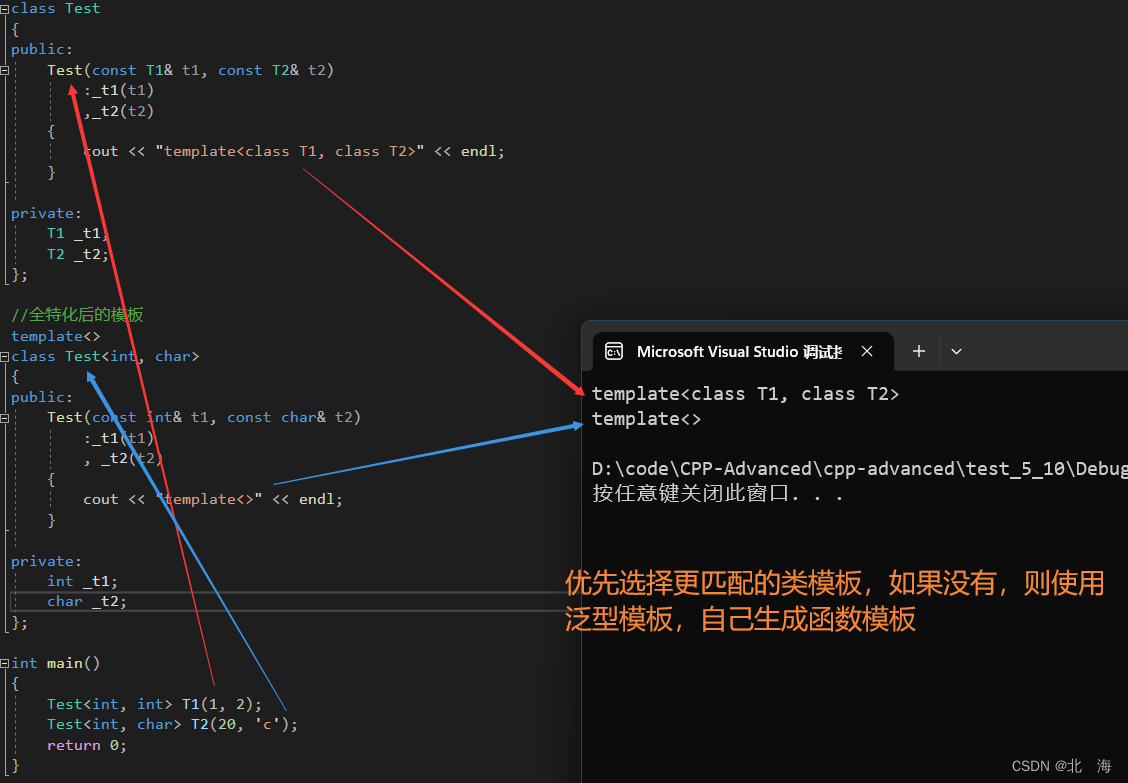 };全特化指 将所有的模板参数特化为具体类型,将模板全特化后,调用时,会优先选择更为匹配的模板类