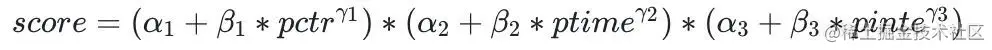 第一类比较直接的解决方案就是设计公式,对多个目标分使用公式进行融合,从而作为最终排序分。此方案的好处就是简单、明确,可以根据权重知道每个目标分是怎么对最终排序生效的。其中一个常用的技巧就是由于不同目标的预估分分布差异大,预估分绝对值的变动会影响调参结果,所以可以考虑使用单个目标分排序后的序号,将其通过合理的归一化后,再对多个目标进行融合。缺点就是不同的模型上线都需要手动调参,带来很大的工作量,并且融合公式也没有根据不同用户做到个性化融合,影响整体排序效果。在得物社区场景,我们先后设计了两版融合公式,第二版加法形式取得了更好的收益,同时参数量也有效降低。