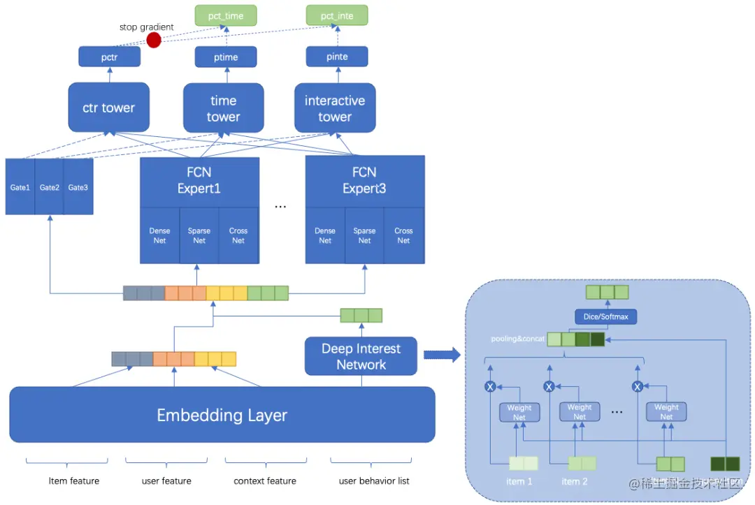 得物社区是一大批年轻人获取潮流信息、分享日常生活的潮流生活社区。其中用户浏览的信息,进行个性化的分发,是由推荐系统来决策完成的。目前得物社区多个场景接入了推荐算法,包括首页推荐双列流、沉浸式视频推荐、分类 tab 推荐流、直播推荐流等多个场景,为了给用户提供更好的服务和体验,我们从整个推荐系统维度为相关服务做了大量优化。现在主流的推荐系统都会有召回、粗排、精排和机制等多个模块组成,本文主要介绍我们在精排层面演进过程中做的一些工作和思考。