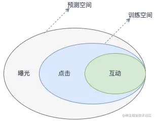 对于一个业务场景,往往会关注多个业务指标,除了点击之外,另一些重要的关注点是用户点击后的后续行为。对于电商场景一般是收藏商品、下单商品等用户深层次行为,对于信息流场景更多的是观看时长、点赞、评论等用户交互行为。这些转化行为是用户点击之后发生的,如果在点击样本空间上对互动进行建模,线上直接使用会产生 bias,称为样本选择偏差,多目标联合建模时可以通过设计特定的模型结构来解决。