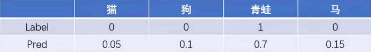 \begin{array}{l} \mathrm{H}(\mathrm{p}, \mathrm{q})=-\sum_{\mathrm{i}=1}^{\mathrm{n}} \mathrm{p}(\mathrm{x}_{\mathrm{i}}) \log \mathrm{q}(\mathrm{x}_{\mathrm{i}})\\ \operatorname{loss}=-(0^{\star} \log (0.05)+0^{\star} \log (0.1)+1^{\star} \log (0.7)+0^{\star} \log (0.15))=0.36 \end{array}这里predict应该是一个概率分布的形式,模型输出如果想化为概率的形式,可以采用softmax函数。