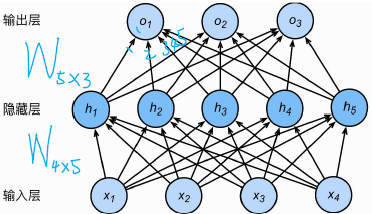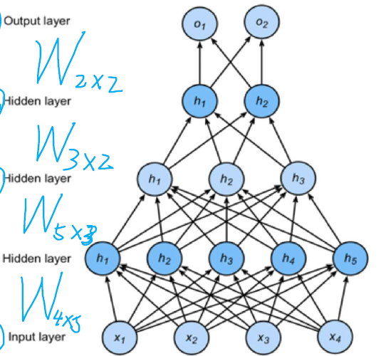 \mathrm{W}_{4 \times 5}隐藏层的权重矩阵是 W_{5 \times 3}