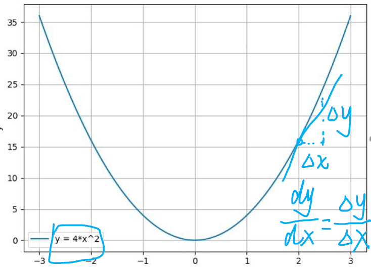 \begin{array}{l} \mathrm{y}=\mathrm{f}(\mathrm{x})=4 * \mathrm{x}^{2} \\ \mathrm{y}^{\prime}=\mathrm{f}^{\prime}(\mathrm{x})=8 * \mathrm{x} \\ \mathrm{x}_{0}=2, \quad \mathrm{y}_{0}=16, \mathrm{f}^{\prime}(\mathrm{x}_{0})=16 \\ \mathrm{x}_{1}=\mathrm{x}_{0}-\mathrm{f}^{\prime}(\mathrm{x}_{0})=2-16=-14 \\ \mathrm{x}_{1}=-14, \quad \mathrm{y}_{1}=784, \mathrm{f}^{\prime}(\mathrm{x}_{1})=-112 \\ \mathrm{x}_{2}=\mathrm{x}_{1}-\mathrm{f}^{\prime}(\mathrm{x}_{1})=-14+112=98, \quad \mathrm{y}_{2}=38416 \\ \end{array}对比: