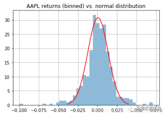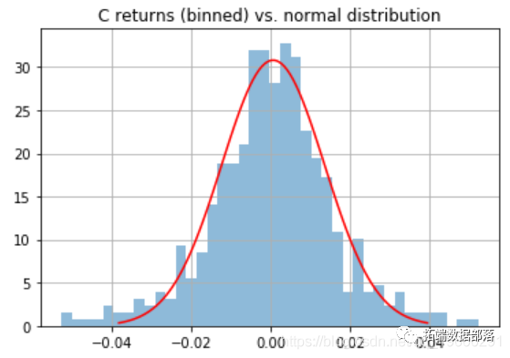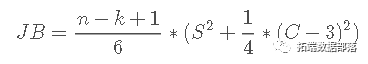 其中 S 是偏度,C 是峰度。正态分布样本将返回JB 分数。低 p 值表明股票收益不是正态分布的。