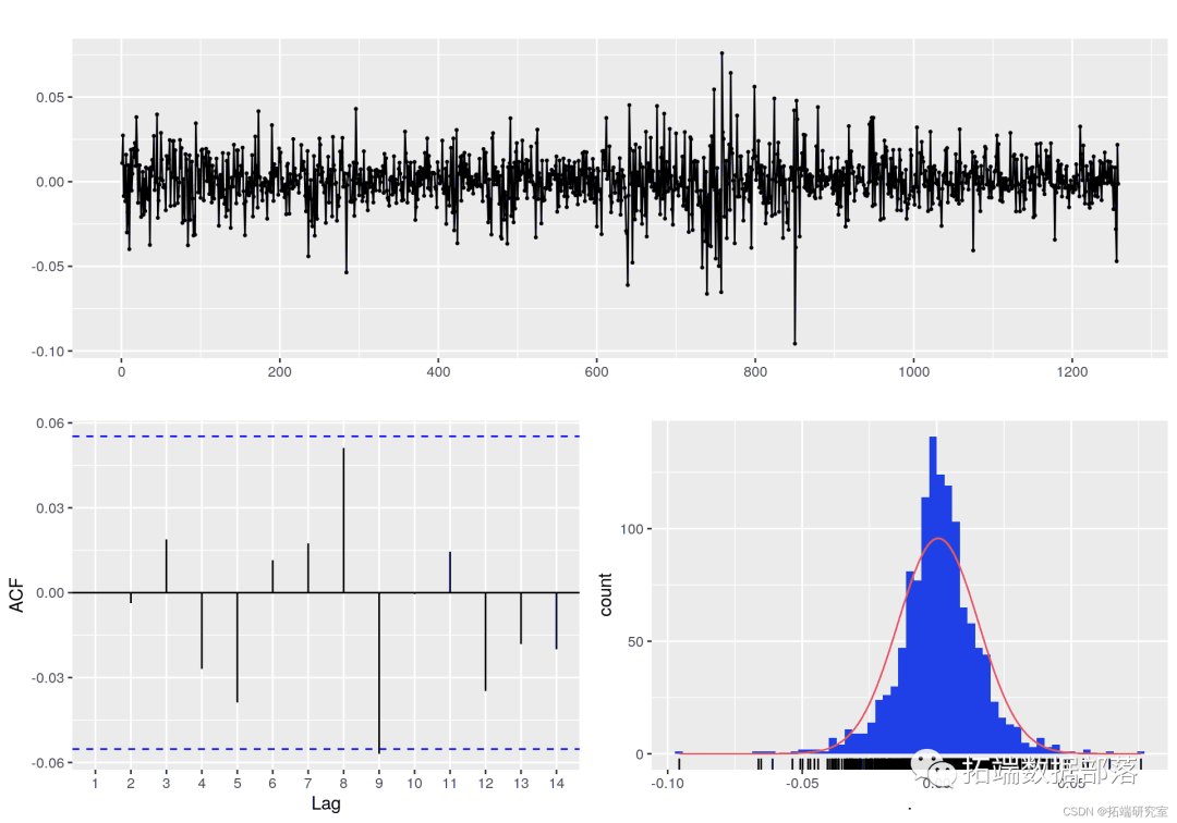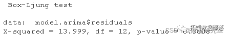 我们不能拒绝原假设,因此残差的过程表现得像白噪声,所以没有可能被建模。