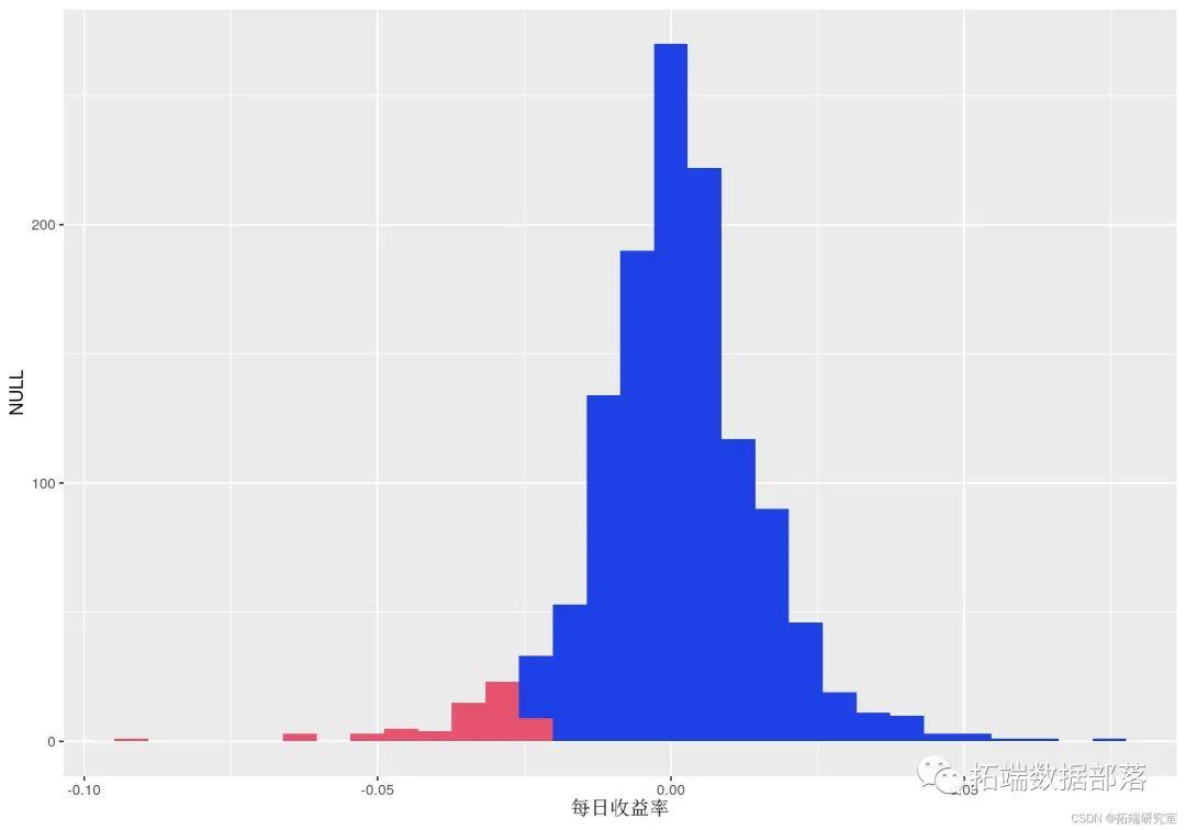 红色条表示低于 5% 分位数的收益率。