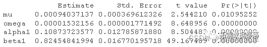 a1和 β1都显着不同于零,因此假设残差随时间变化的波动率是合理的。