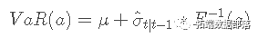 之前我们观察到收益率表现出随时间变化的波动性。因此,对于 VaR 的估计,我们使用 GARCH(1,1) 模型给出的条件方差。我们使用学生的 t 分布。对于此方法,风险价值表示为: