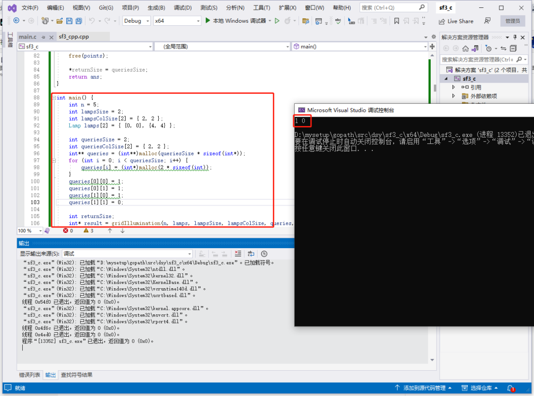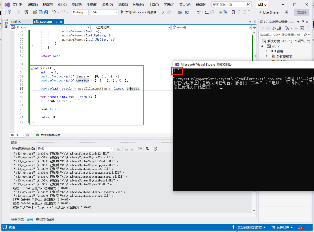 1.首先,定义一个存储灯位置的二维数组 lamps,和查询位置的二维数组 queries。