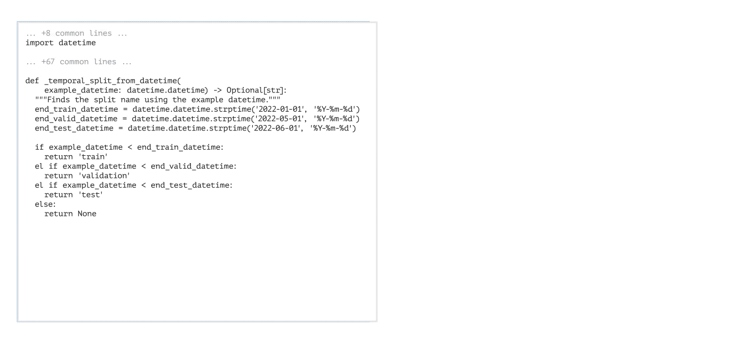 在较高层次上,对于每个新的审查员评论,我们以与训练相同的格式生成模型输入,查询模型,并生成建议的代码修改。如果模型对预测有信心,并且满足了一些额外的启发式规则,我们就会将建议的修改发送到下游系统。下游系统,即代码审查前端和集成开发环境(IDE),向用户展示建议的编辑,并记录用户交互,如预览和应用事件。一个专门的管道收集这些日志,并生成汇总洞察,例如,本博客文章中报告的总体接受率。