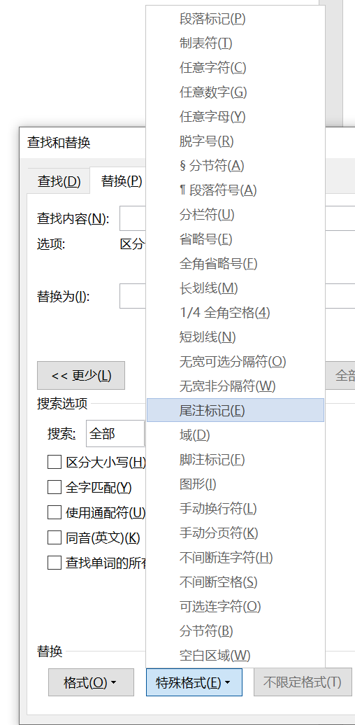将光标移动到正文中的任何一处(若光标处在文章末尾的尾注处,则只会进行尾注的格式替换,而不是全文替换),在开始菜单栏选择替换