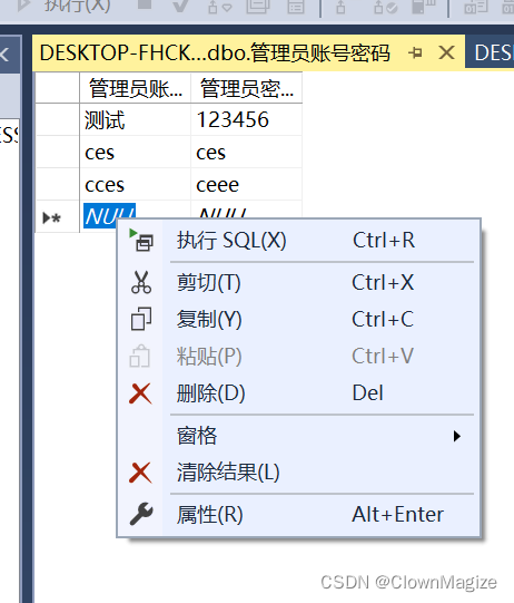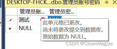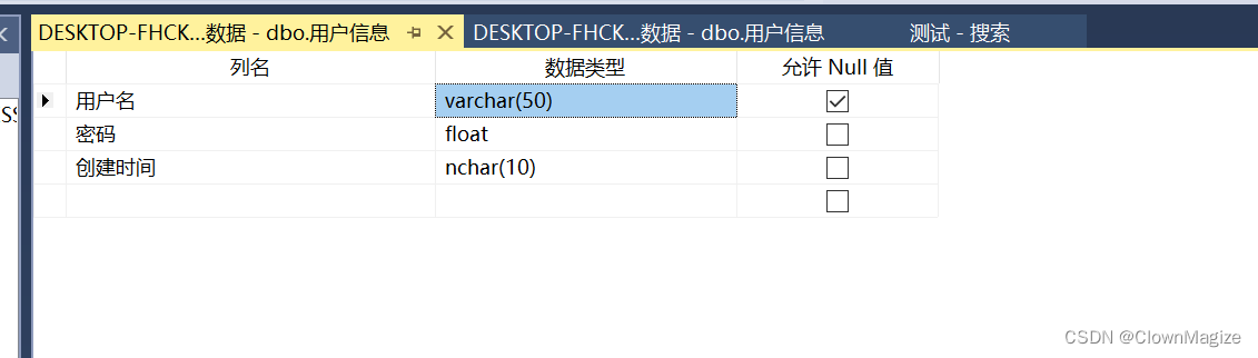 首先查看定义的表格数据类型有无问题,点击表格编辑前100行 如何更改编辑行数:更改编辑行数 这里的允许NULL值为通过输入端输入后,写进数据库是否包含空值 例如,输入端通过注册输入注册名后,若允许NULL值未勾选,则写进表格的为用户名+数据类型除了用户名所占字节剩余用空格进行填充(写入表格中的数据为用户名+若干空格) 若允许NULL值勾选了,则写进表格的即为刚刚进行注册的用户名,其后没有多余空格