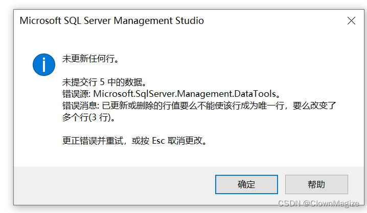 报错如图: 数据库更新表格时,提示如下错误弹框