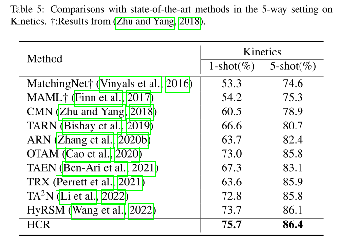 在上表中,遵循Kinetics-CMN协议(Zhu和Yang,2018),本文优于所有最近的方法,例如,TRX和HyRSM,并取得了国家的最先进的动力学结果,这再次证明了我们的方法的优越性。