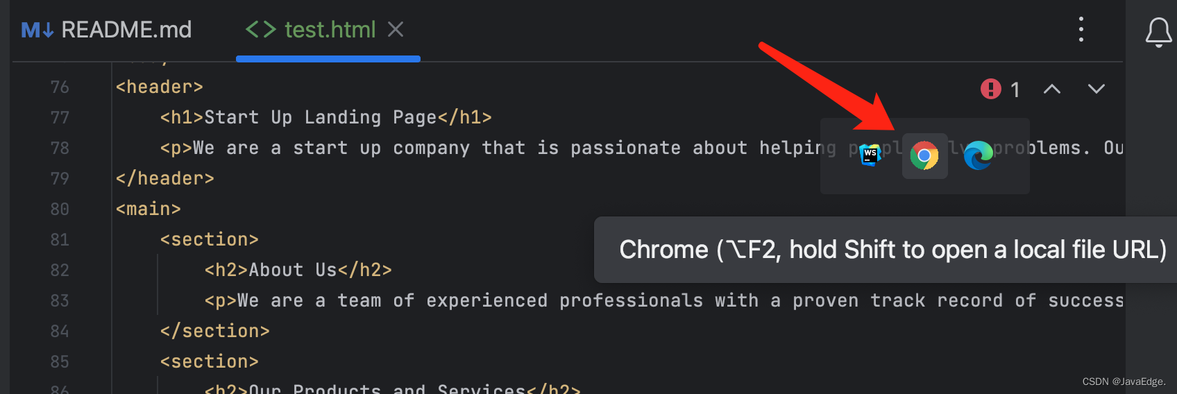 切换到WebStorm,将代码粘贴到新建的 HTML 文件。