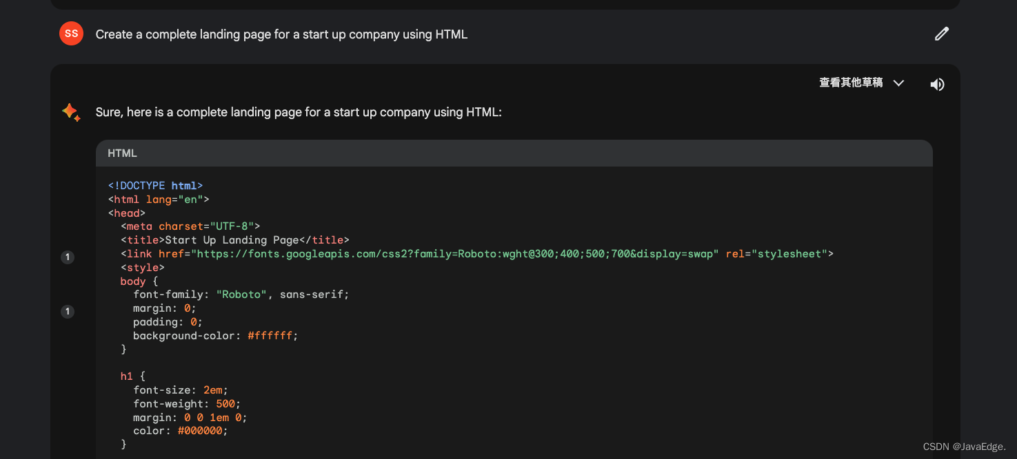 鉴于 ChatGPT 第一次生成的网页框架和内容太少,这里可以结合前面 ChatGPT 在内容方面给出的建议,给页面适当增加内容,让它变得更丰富。