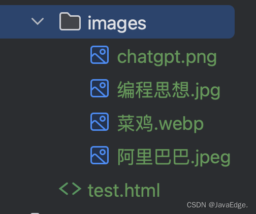 index.html 文件同级的路径下,创建 images 文件夹,用于存放网页会用到的各种图片。