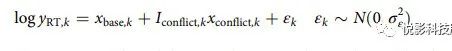 在这里,我们使用了MATLAB的指南针工具箱来拟合一个模型,该模型提取了独立于冲突效应的RT的试验水平估计。此模型的形式如下: