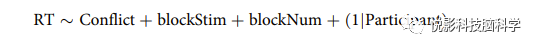 我们通过拟合一个具有交互项的替代模型,进一步测试了刺激和试验-试验冲突水平之间可能的交互作用: