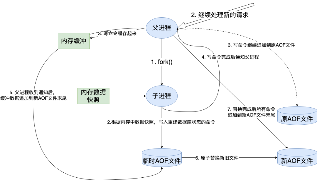 开启混合持久化之后,AOF在重写时 不再是单纯将内存数据转换为 RESP 命令写入 AOF 文件,而是将重写这一刻之前的内存做 RDB 快照处理,并且将 RDB 快照内容和增量的 AOF 修改内存数据的命令存在一起,都写入临时 AOF 文件。等重写完成后替换原有 AOF 文件。