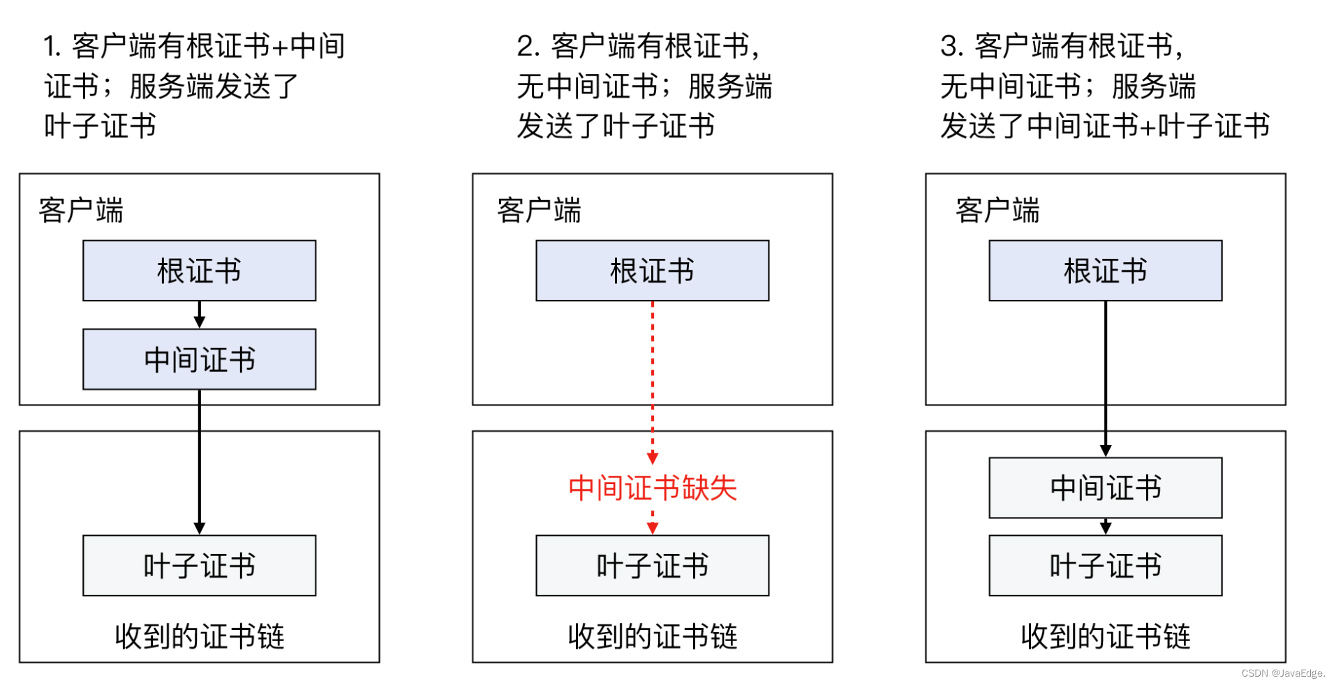 信任叶子证书3种信任链: